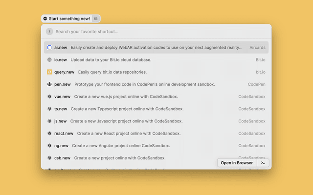 Start something .new! .new links are shortcuts to your favorite actions on the websites you love.