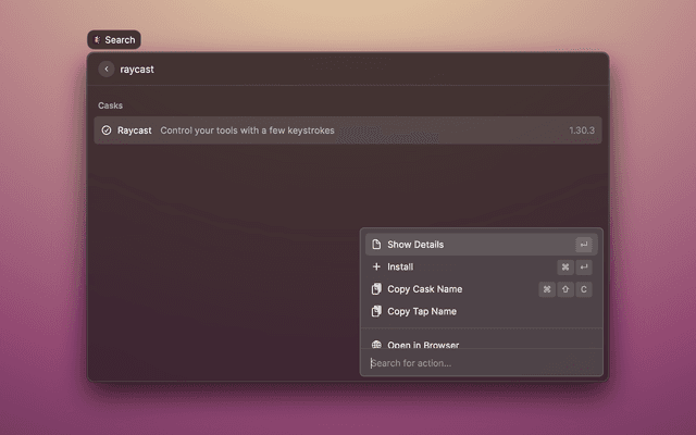 Search and manage your brew formulae and casks from Raycast.