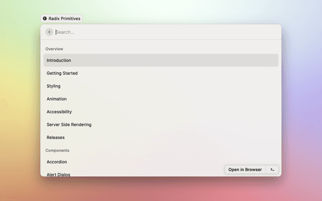 Search and open Radix content directly from Raycast.